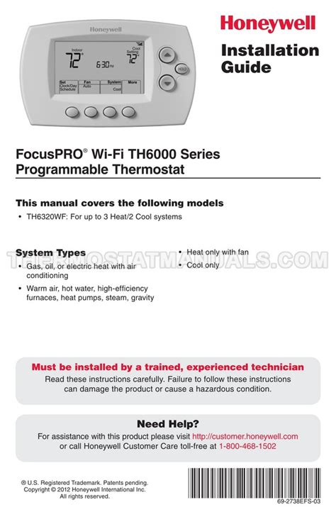 Honeywell TH6320WF FocusPro 6000 Series Installation Guide from www.thermostatmanuals.com